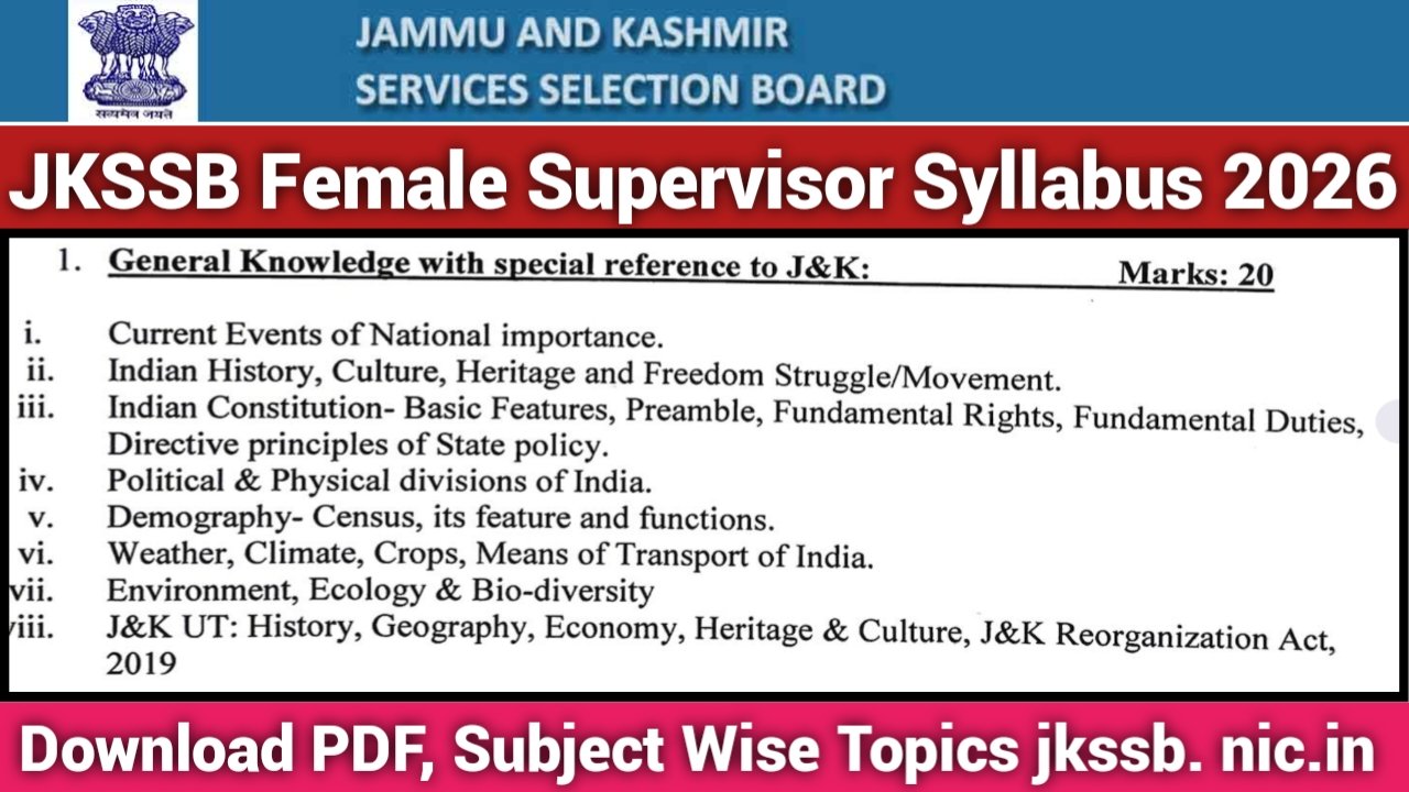 JKSSB Female Supervisor Syllabus 2026 Download PDF, Subject Wise Topics